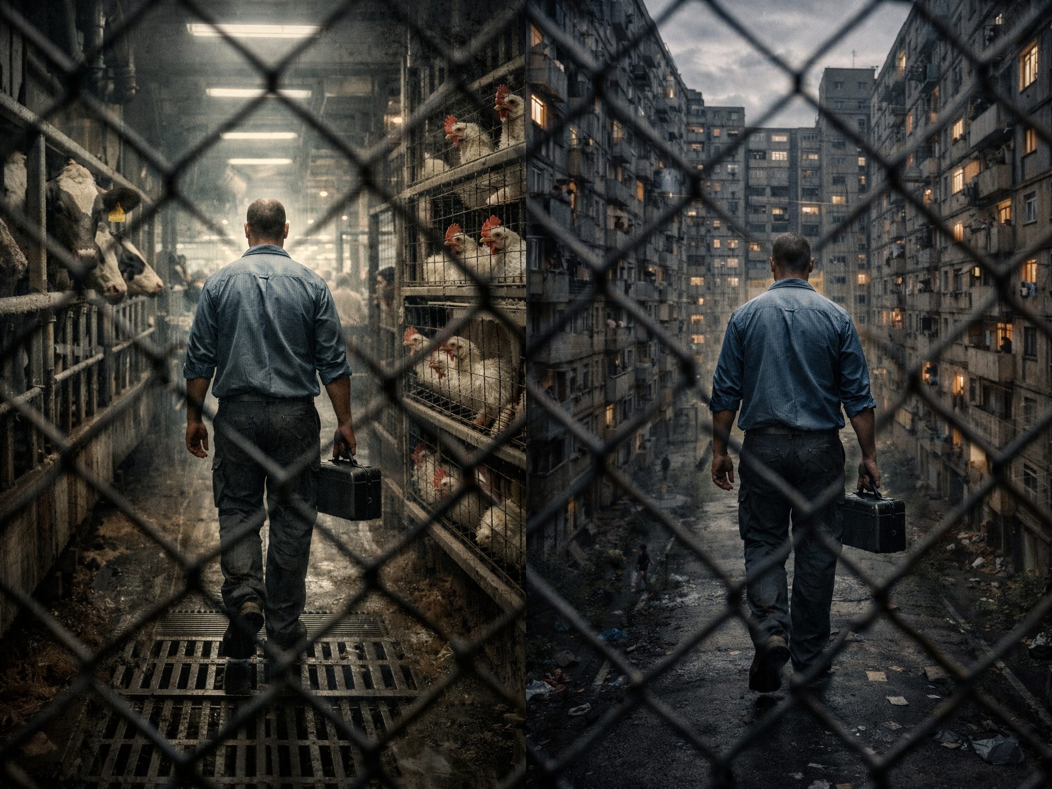 Most people who hear about the “farmed human” idea will immediately think about buildings and structured physical confinement.